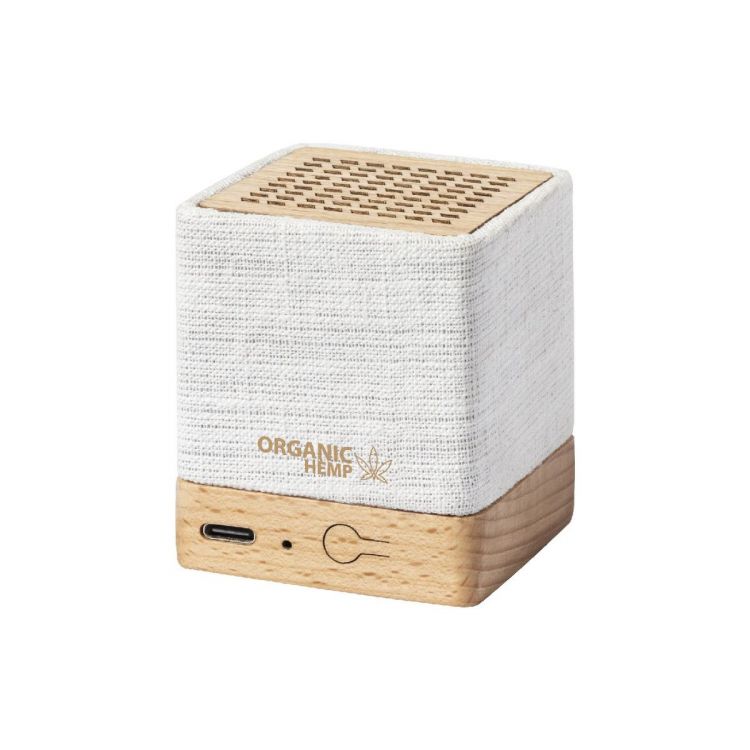 Bluetooth®-Lautsprecher mit Gehäuse aus einer Kombination aus Bio-Hanf und Naturholz.