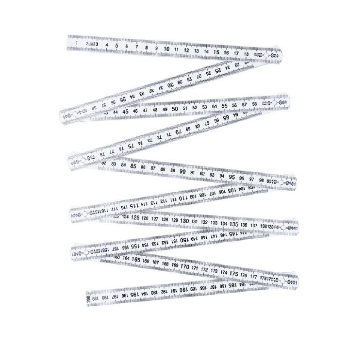 Faltbares 2 Meter Maßband aus widerstandsfähigem Fiberglas. Mit sichtbarer schwarzer Skala in Zentimetern auf beiden Seiten. Mit verstellbaren Positionen auf 90°, 180° und 270° für mehr Vielseitigkeit. (weiß farbe)