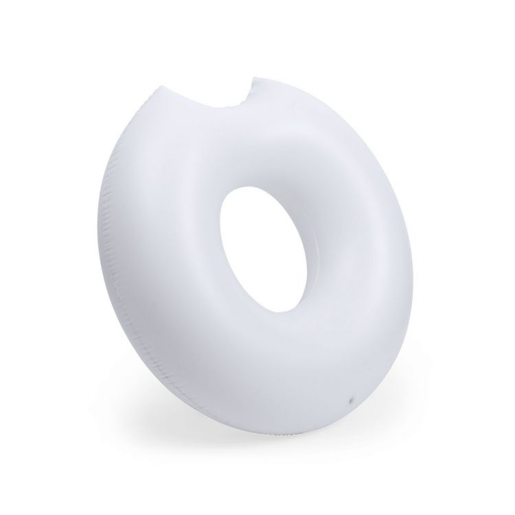 Originelle Luftmatratze aus PVC in Maxi-Größe und Form eines angebissenen Donuts. Präsentiert mit spezieller Faltung für einfaches Bedrucken. (weiß farbe)