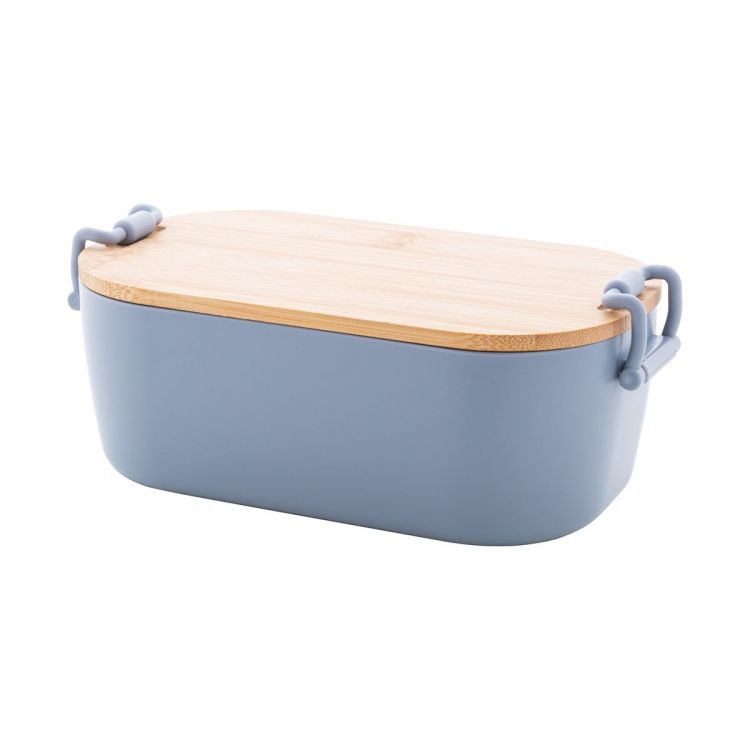 Lunchbox aus PP-Kunststoff mit Bambusdeckel und Schnallenverschluss. Füllmenge: 1000 ml.