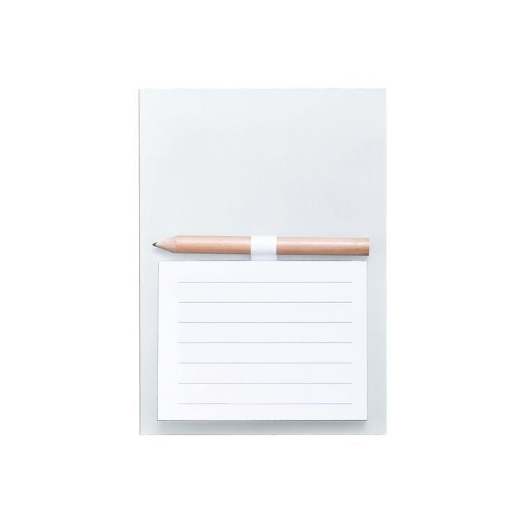 Magnet-Notizblock aus robustem Polypropylen (PP) in verschiedenen lebendigen Farben. Mit 40 linierten Blättern sowie Stifthalter für Mini-Bleistift (inklusive).