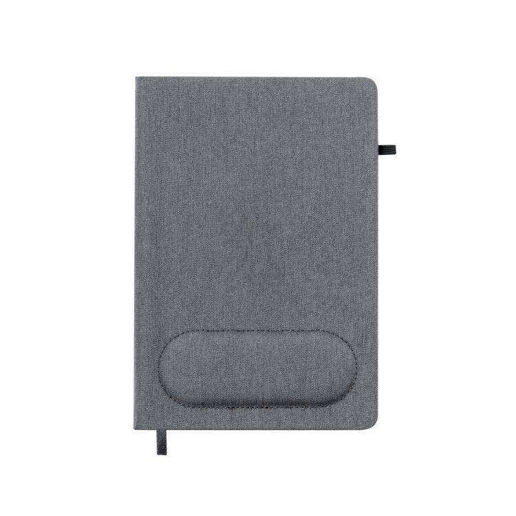 Notizblock mit integriertem Mauspad auf dem Cover. Hergestellt aus RPET 300D, mit festem Umschlag und einem komfortablen Handgelenkpolster, das auch als Mauspad verwendet werden kann. Inklusive Lesezeichen und farblich passendem Stifthalter. 100 unbedruckte Innenseiten, erhältlich in elegantem Grau. Mit RPET-Logo auf der Rückseite und in einer individuellen, recycelten Tasche.Das RPET-Material wird aus recyceltem Kunststoff hergestellt, wodurch die Wiederverwendung von Kunststoffabfällen gefördert und ein Beitrag zur Nachhaltigkeit unseres Planeten geleistet wird. (grau farbe)
