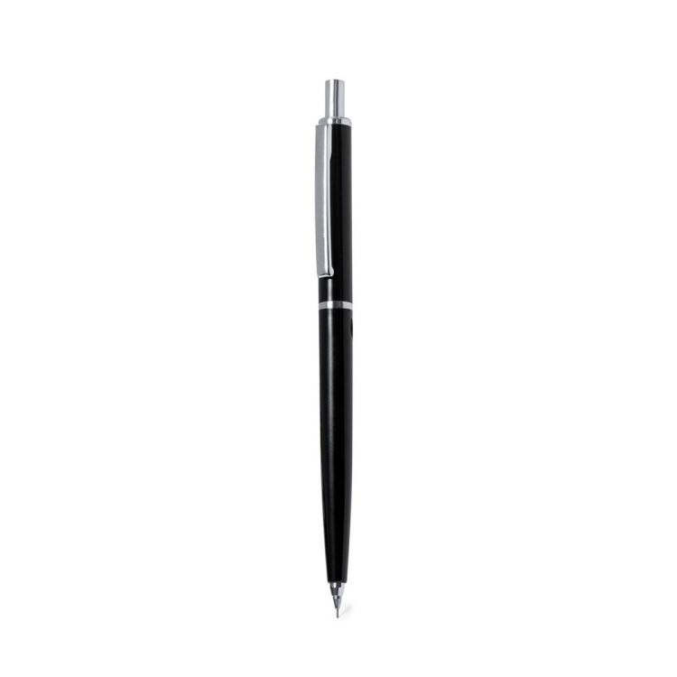 Stilvoller Druckbleistift aus robustem ABS. Schwarzer Schaft und passender glatter Griff, mit verchromtem Druckknopf, Clip, Spitze und Mittelring. Inklusive Radiergummi und 0,7 mm Minen. (schwarz farbe)