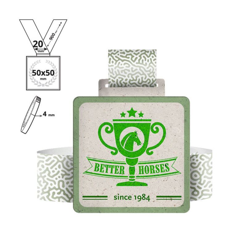 Quadratische Medaille mit Vollfarbdruck auf der Vorderseite und mit einem vollständig personalisierbaren 20x900mm Lanyard. Dank des speziellen Lasergravurs und des vollflächigen UV-Farbdrucks können wir jede vom Kunden gewünschte Individualisierung realisieren.