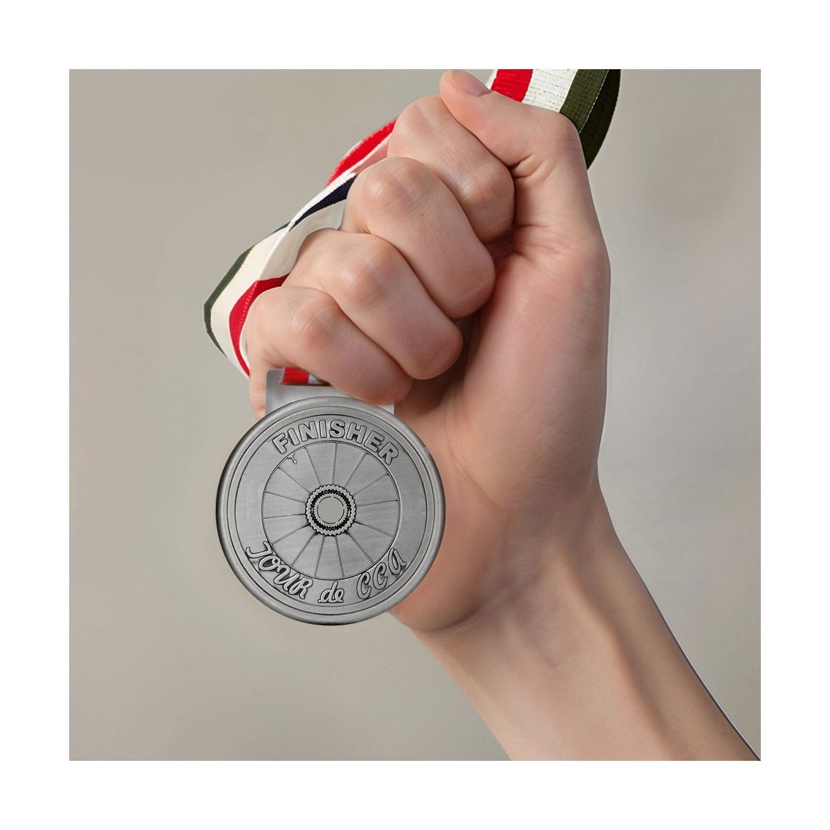 Runde Medaille mit vollständig anpassbarem 15 x 900 mm langem Schlüsselband. Die Medaille wird mit einer 3D-Effektform hergestellt, die speziell nach dem Projekt des Kunden erstellt wurde. Dank dieses Prozesses können wir ein einzigartiges und dreidimensionales Produkt erhalten, das in die Form gegossen wird. Die Medaillen sind in drei Farben zum gleichen Preis erhältlich (Gold, Silber und Bronze).