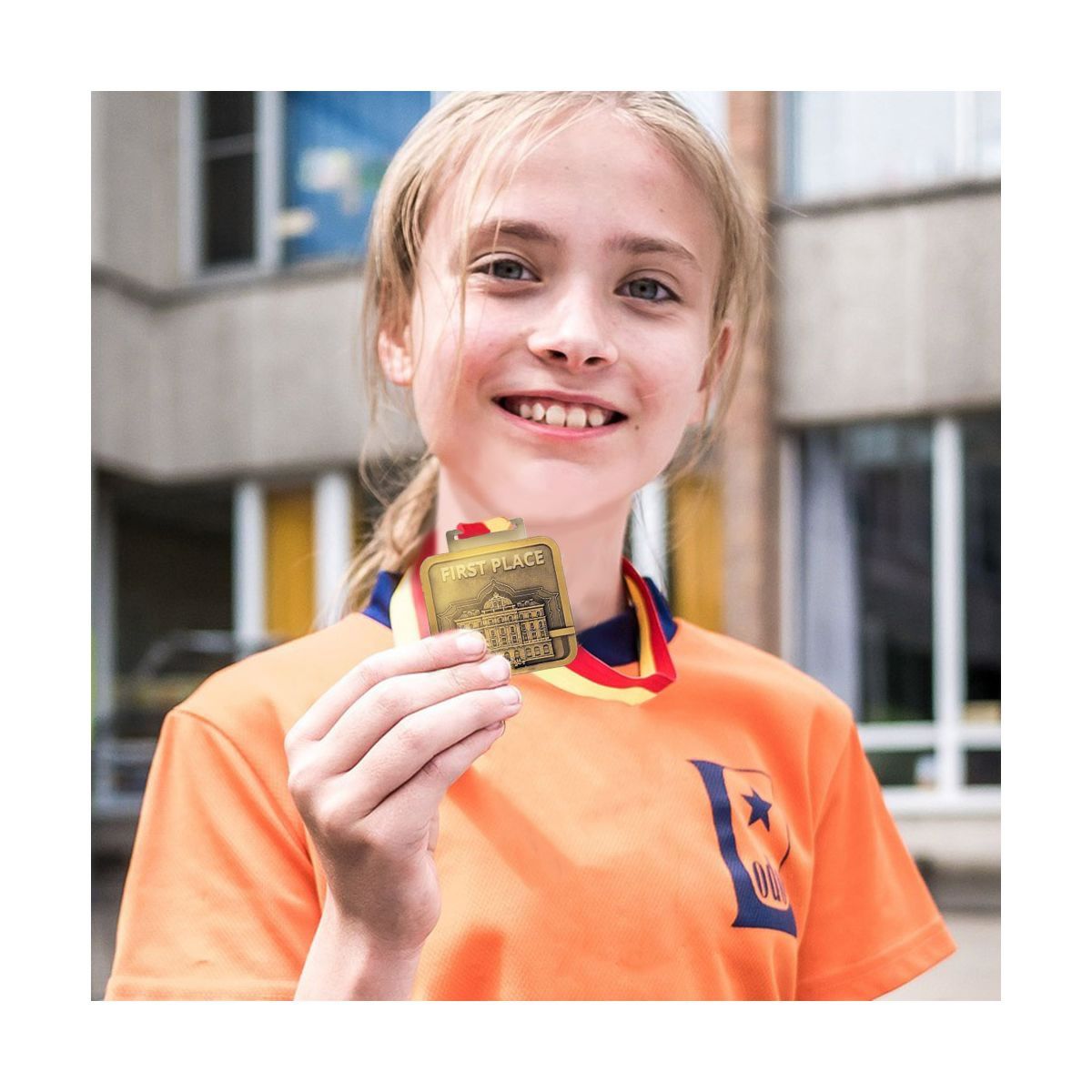Quadratische Medaille mit einem vollständig anpassbaren 15 x 900 mm großen Schlüsselband. Die Medaille wird mit einer 3D-Effektform hergestellt, die speziell nach dem Projekt des Kunden erstellt wurde. Dank dieses Prozesses können wir ein einzigartiges und dreidimensionales Produkt erhalten, das in die Form gegossen wird. Die Medaillen sind in drei Farben zum gleichen Preis erhältlich (Gold, Silber und Bronze).