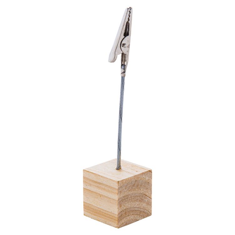 Memohalter mit Sockel aus Kiefernholz und Metall-Klammer, in natürlich farbe