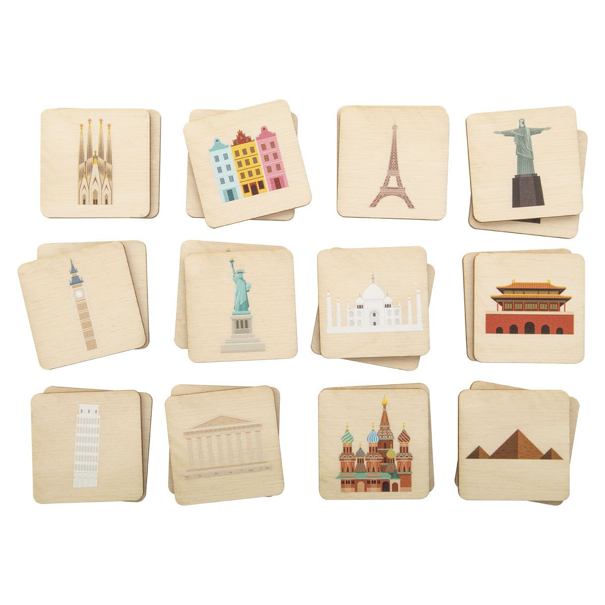 Memory-Spiel aus laminiertertem Birkenholz mit Themen-Motiven. 24 Spielsteine / 12 Motive (40 x 40 mm). Der Preis ist inkl. einem 1-C Logodruck auf der Rückseite aller Spielsteine. Mindestmenge: 50 Stk