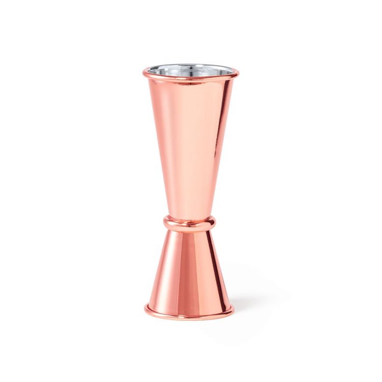 Getränkespender aus rostfreiem Stahl mit Außenbeschichtung aus verzinktem Kupfer. 2 Spender: einfach 25ml und doppelt 50ml. Präsentiert in einer attraktiven Einzelverpackung. (natürlich farbe)