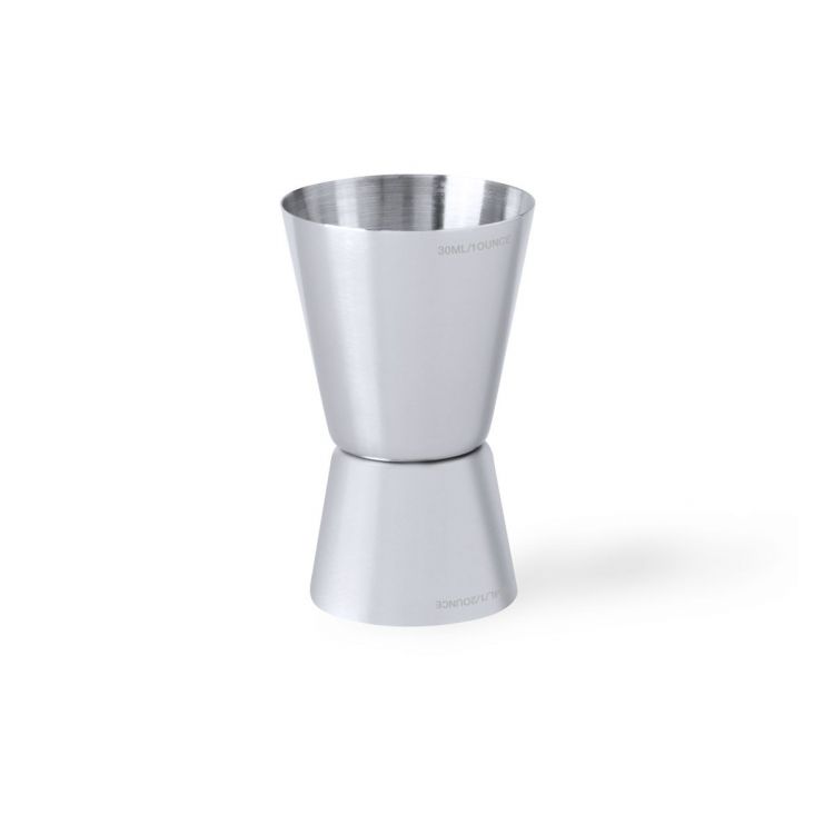 Doppelmessbecher aus Edelstahl mit mattem Finish. Speziell für den Laserdruck entwickelt. Präsentiert in einer PVC-Schachtel. (natürlich farbe)