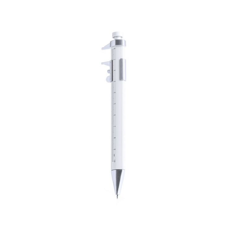 Dreh-Kugelschreiber mit im Gehäuse integriertem Lineal von 10 cm Länge. Blaue Tinte. (weiß farbe)