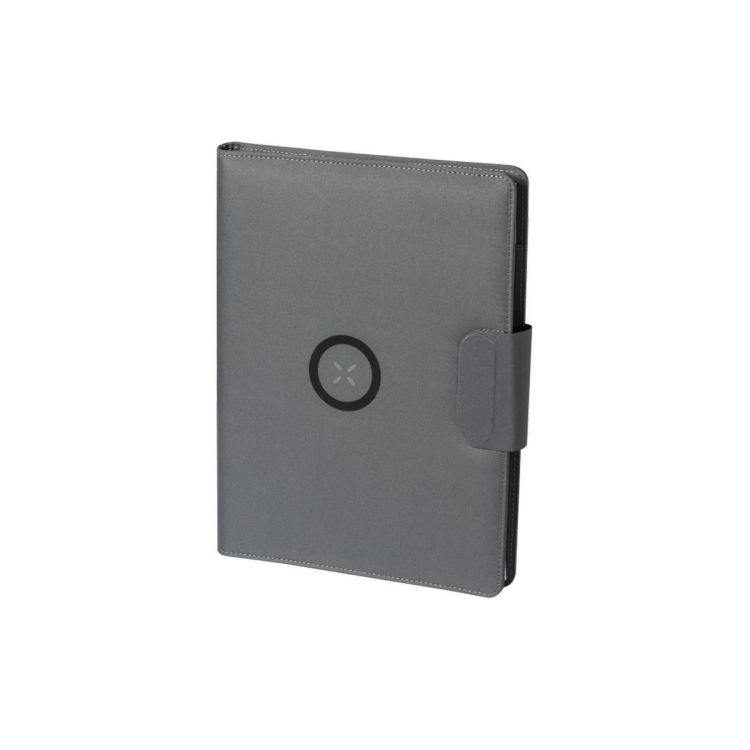 Multifunktionaler Ordner/Notizblock aus 300D RPET-Polyester, hergestellt aus recyceltem Kunststoff, der die Wiederverwendung von Kunststoffabfällen fördert und zur Nachhaltigkeit unseres Planeten beiträgt. Mit Magnetverschluss und RPET-Etikett im Inneren. In die Hülle integriertes kabelloses 10-W-Ladegerät mit Magnetverschluss, um das Gerät während des Ladens zu benutzen, und mit Klebering, kompatibel mit allen Geräten mit Magsafe- und Qi-Technologie.Integrierter Akku mit 5.000 mAh Ladekapazität, mit Typ-C-Eingangs-/Ausgangsanschluss und LED-Ladestatusanzeige, inklusive Kabel.Innen mit Smartphone-Halterung und verschiedenen Kartenfächern, einschließlich Stifthalter und A4-Notizblock mit 20 Blatt Einstreifen-Layout. Präsentiert in einer attraktiven Designbox.Alle unsere externen Zusatzbatterien haben eine reale Kapazität und bestehen aus nicht recycelten Batterien der Klasse A mit einer Lebensdauer von mindestens 500 Ladezyklen, die den CE-Vorschriften entsprechen. Darüber hinaus werden sie gemäß den RoHS-Normen und unter Einhaltung der folgenden Sicherheitsanforderungen hergestellt: Überladungsschutzsystem der Powerbank. Vollständiges Entladeschutzsystem, das die Lebensdauer der Powerbank erhöht. Blockiersystem zur Vermeidung von Kurzschlüssen. Konstantes Ladetransfersystem, entsprechend der Kapazität des Zielgeräts. (grau farbe)