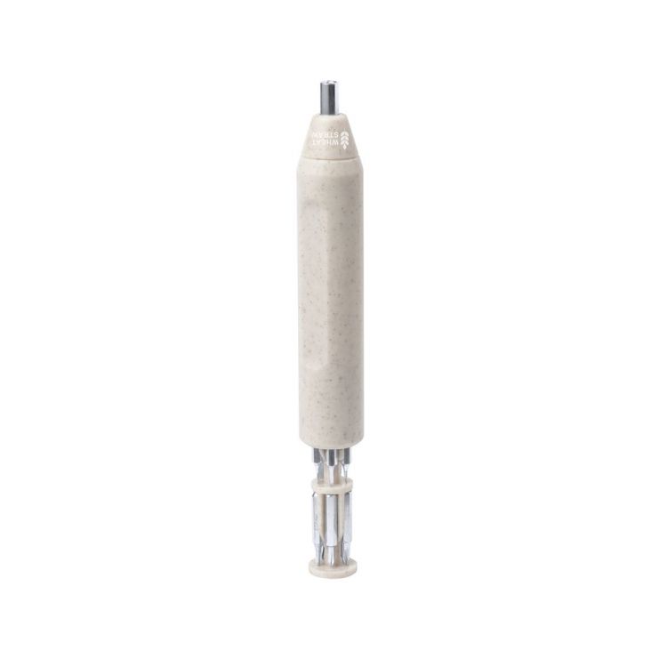 Praktisches Multitool aus Weizenstroh in Form eines Schraubendrehers. Enthält ein Fach im Griff zur Aufbewahrung mehrerer magnetischer Bits (Flach- und Kreuzschlitz). Weizenstroh-Logo und präsentiert in einer Design-Kraftbox.Weizenstroh fördert die Verwendung natürlicher Rohstoffe und reduziert so die Schadstoffemissionen. (natürlich farbe)
