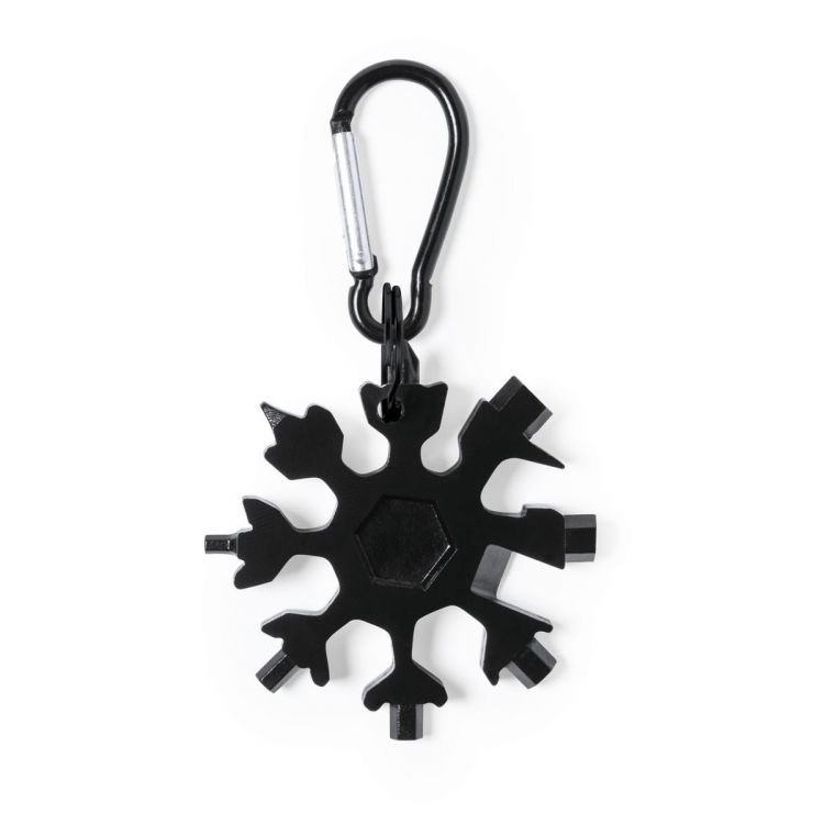 Echtes und handliches Multitool aus widerstandsfähigem Edelstahl in schwarzer Ausführung, mit passendem Ring und Tragekarabiner. Mit 17 Funktionen, einschließlich Flach- und Kreuzschlitzschraubendreher, Inbusschlüssel, Messer und Flaschenöffner. Präsentiert in einer individuellen Blackbox. (schwarz farbe)
