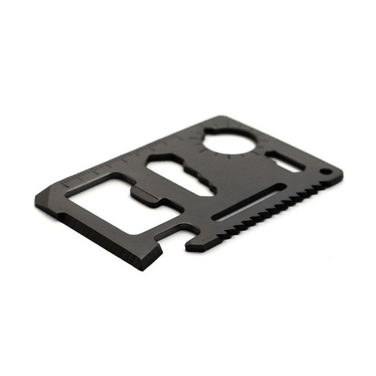 Multi-Tool aus robustem Edelstahl mit 11 Funktionen. Enthält unter anderem Dosenöffner, Messer, Schraubendreher, Lineal, Flaschenöffner, Schraubenschlüssel, Flügelmutterschlüssel, Säge und Orientierungshilfe. Präsentiert in einem widerstandsfähigem Kunstlederetui.