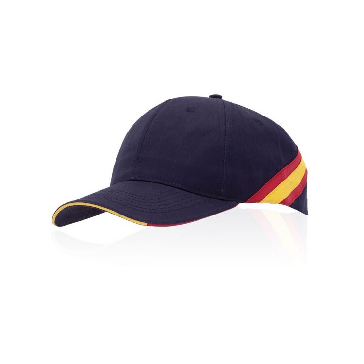 Baseball Cap mit Flaggen-Design aus gekämmter Baumwolle. Mit 6 Panelen sowie dreifarbigem Kontrastrand und Flaggenelementen an den Seiten und am Hinterkopf. Mit umstickten Belüftungsöffnungen und verstellbarem Klettverschluss.