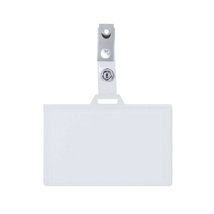 Starrer PS-Kenner mit Metallklemme in Querausrichtung. Ideal, um dort zu bleiben und seinen Ausweis vorzuzeigen. Das Verschlusssystem ist abnehmbar und du kannst den Kenner zusammen mit dem Lanyard verwenden. (transparentes weiß farbe)