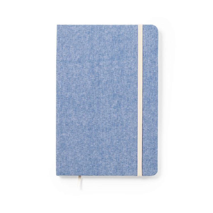 Natur Linie Notizblock aus recycelter Baumwolle. Mit festem Einband und Gummiband in Kontrastfarbe. Innen mit 100 unbedruckten Blättern und Lesezeichen aus Stoff. Erhältlich in einer breiten Farbpalette, mit Logo aus recycelter Baumwolle auf dem hinteren Umschlag.GRS-Zertifizierung (Global Recycled Standard) verfügbar, die die recycelte Herkunft des für die Herstellung des Produkts verwendeten Materials garantiert.