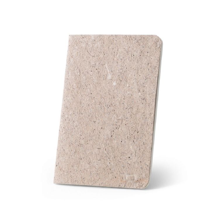 Notizbuch A6 mit flexiblem Cover aus Teeblattverwertung (65%) und Baumwollverwertung hergestellt (35%). Das Papier ist aus Baumwollverwertung hergestellt (100%) und sehr haltbar. Mit 52 unlinierten Seiten und Papierband mit Abbildungen. Bei der Herstellung dieses Notizbuchs wurde kein Abfall erzeugt und es wurden keine Chemikalien oder Bäume verwendet. Da das Produkt aus natürlichen Materialien hergestellt wird, können Farbe des Produkts sowie das Druckergebnis von Produkt zu Produkt unterschiedlich sein, in natürlich farbe