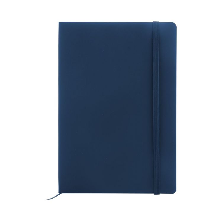 A5 Notizbuch aus recyceltem Kunstleder mit Softcover und 80 linierten Seiten aus Recyclingpapier. Mit farblich abgestimmten Lesezeichen und Gummiband.