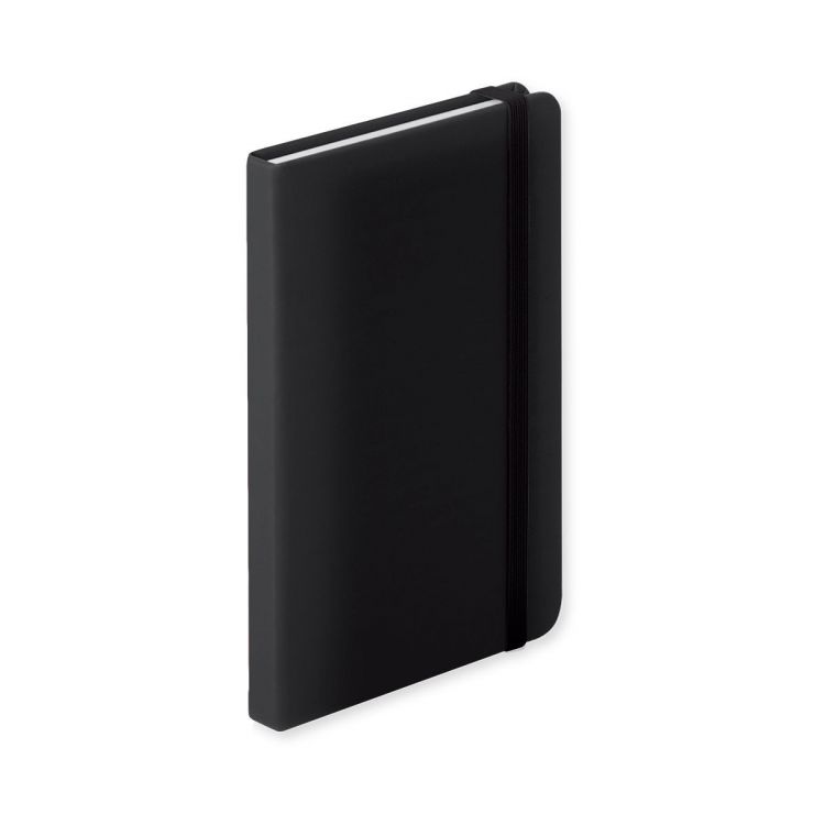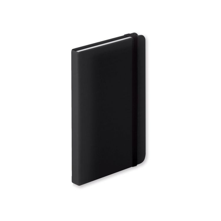Notizbuch mit Kunstleder-Einband, 100 Seiten (liniert) mit Lesezeichen und Gummiband. A6-Größe.