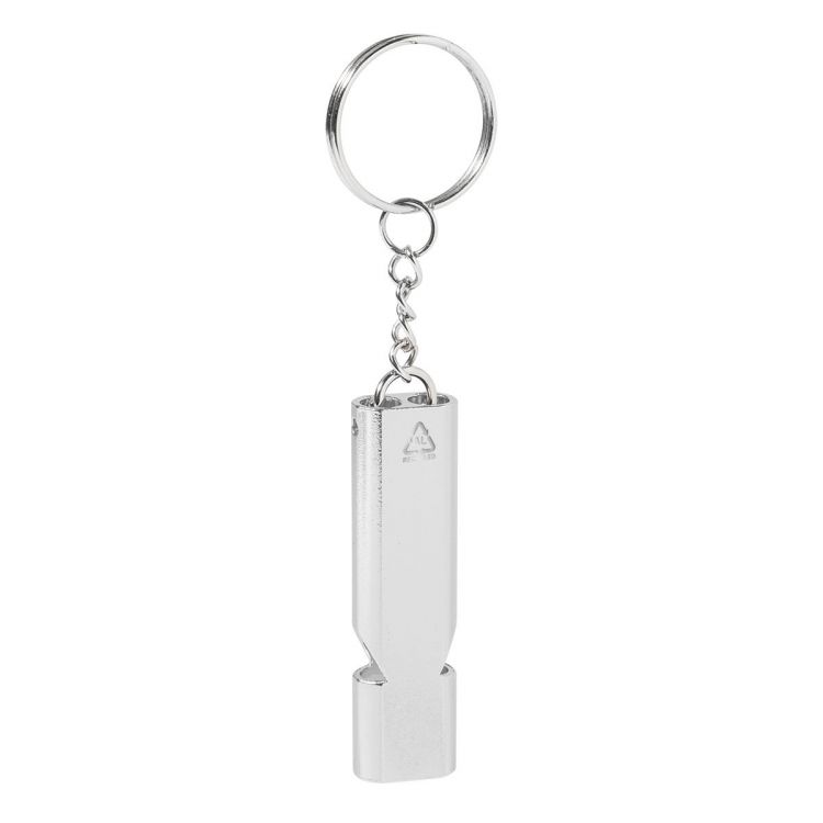 Pfeife aus recyceltem Aluminium mit Schlüsselring aus Metall.