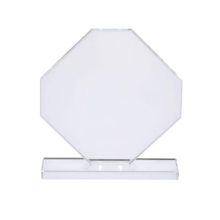 Trophäenplatte aus dickem Glas mit elegantem achteckigem Design und Stand. Ideal für personalisierte Geschenke, Anerkennungen, Auszeichnungen und Dekorationen. Präsentiert in einem individuellen Schutzgehäuse in elegantem Design. (transparentes weiß farbe)
