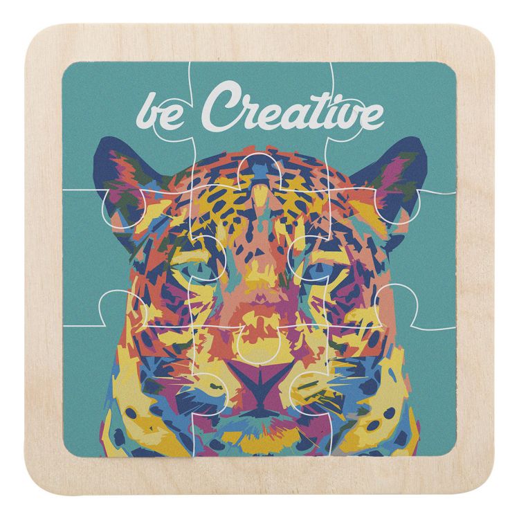 9-teiliges Puzzle mit individuellem Motiv im Holzrahmen (laminierte Birke). Preis inklusive UV LED Druck. Mindestmenge: 100 Stk
