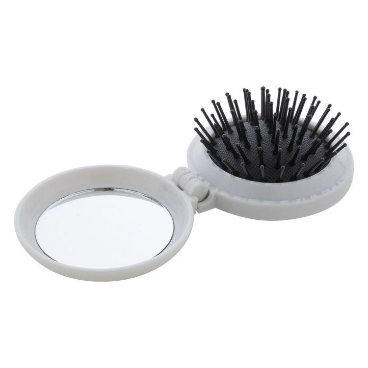 Faltbare Haarbürste aus recyceltem ABS mit Taschenspiegel, in weiß farbe