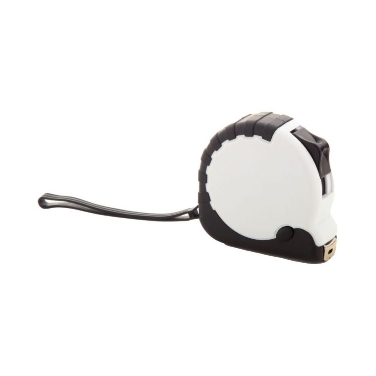 Maßband aus recyceltem ABS Kunststoff mit Stopper, Metallklip und Handschlaufe. Länge: 3 m.