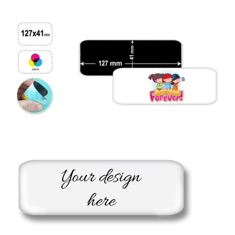 Rechteckiger, flexibler Magnet aus einer Magnetfolie, die auf eine kunststoffbeschichtete Papieroberfläche laminiert ist. Das Produkt ist auf der Vorderseite mit Digitaldruck vollständig personalisierbar.