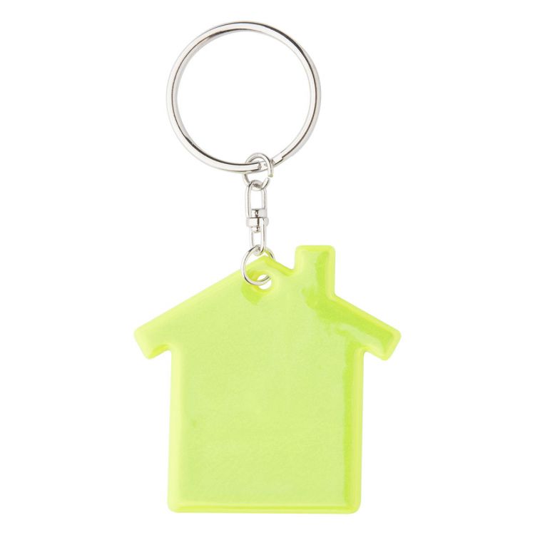 Reflektor-Schlüsselanhänger in Hausform. Nur für Werbezwecke, das Produkt erfüllt nicht die Eigenschaften von persönlicher Schutzausrüstung