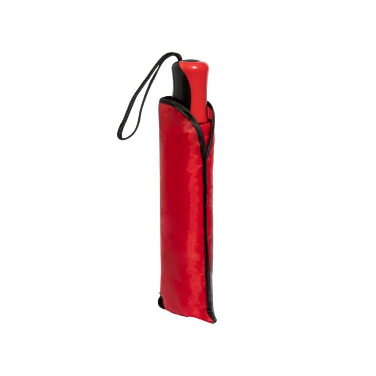 8-Panel-Faltschirm aus 190T Polyester. Manuelle Öffnung, mit silberfarbenen Metallrippen und Klettverschluss. Ergonomischer Griff mit Tragegurt und passender Schutzhülle. Erhältlich in einer breiten Farbpalette. Verpackt in einer individuellen, recycelten Tasche.