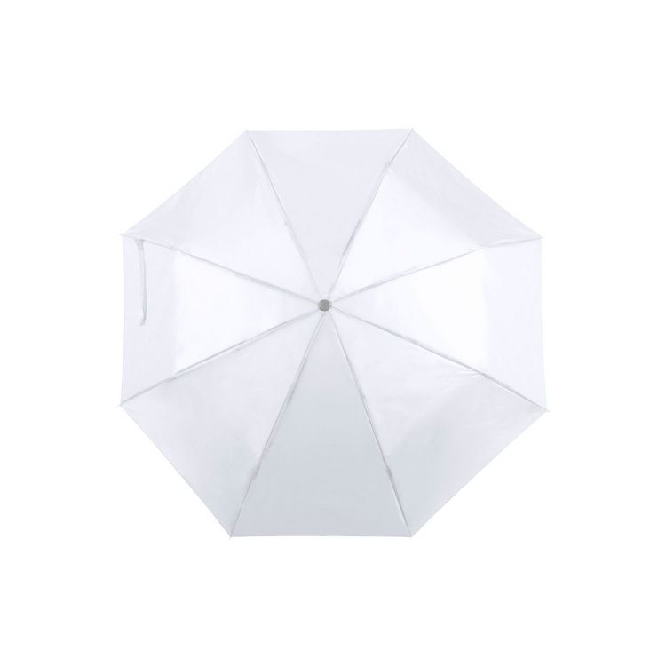 Taschenschirm mit 8 Panelen aus 190T-Polyester in einer breiten Palette leuchtender Farben und mit einem Durchmesser von 96 cm. Manuelle Öffnung, mit silberfarbenen Metallstäben, Klettverschluss und Trageschlaufe am ergonomischen Griff. Präsentiert in einer passenden individuellen Tasche.
