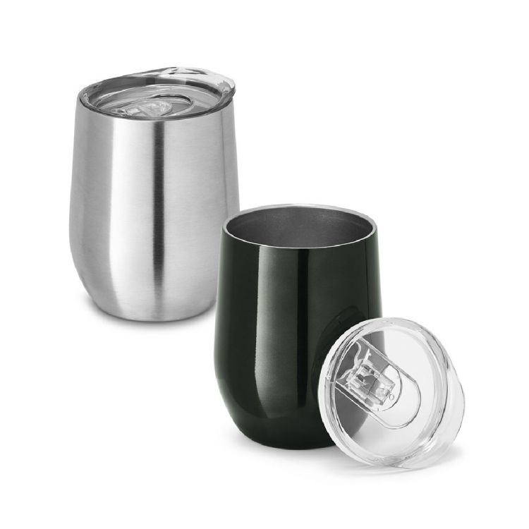 Isolierbecher aus Edelstahl (400 mL), doppelwandig, vakuumisoliert und Deckel mit Schiebverschluss. Geliefert in einer Schachtel