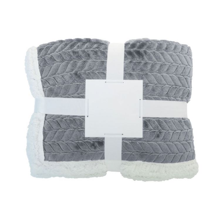 Zweilagige RPET-Decke mit Jacquardmuster. Mit 240 g/m² RPET-Flanellfleece und wendbarem 210 g/m² RPET-Sherpa-Fleecefutter. Eingewickelt mit einem Band und bedruckbarer Papierkarte.