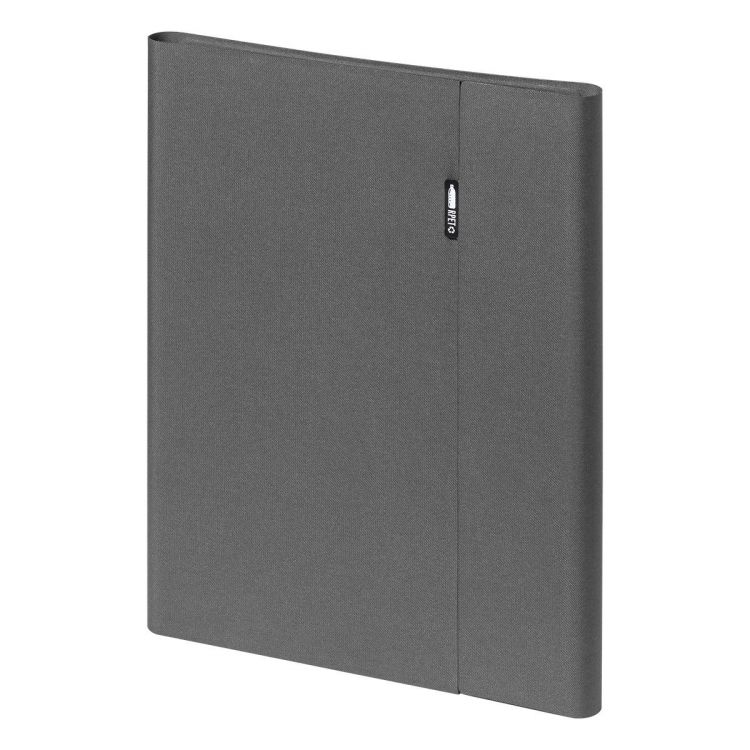 Dokumentenmappe aus 600D RPET-Polyester mit Magnetverschluss, faltbarem Handyhalter und Notizblock mit 20 Seiten (liniert). Mit RPET-Label. Größe A4.