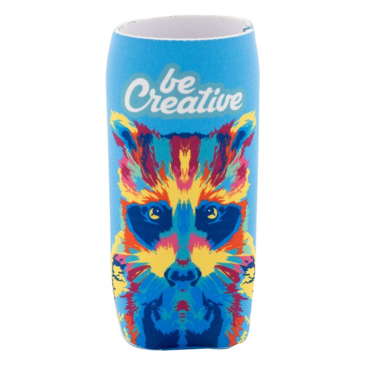 Individuelle Kühlhülle aus RPET-Neopren für 0,33-l-Aluminiumdosen in Sleek-Type-Ausführung. Mit vollflächigem Sublimationsdruck. Mindestmenge: 50 Stk