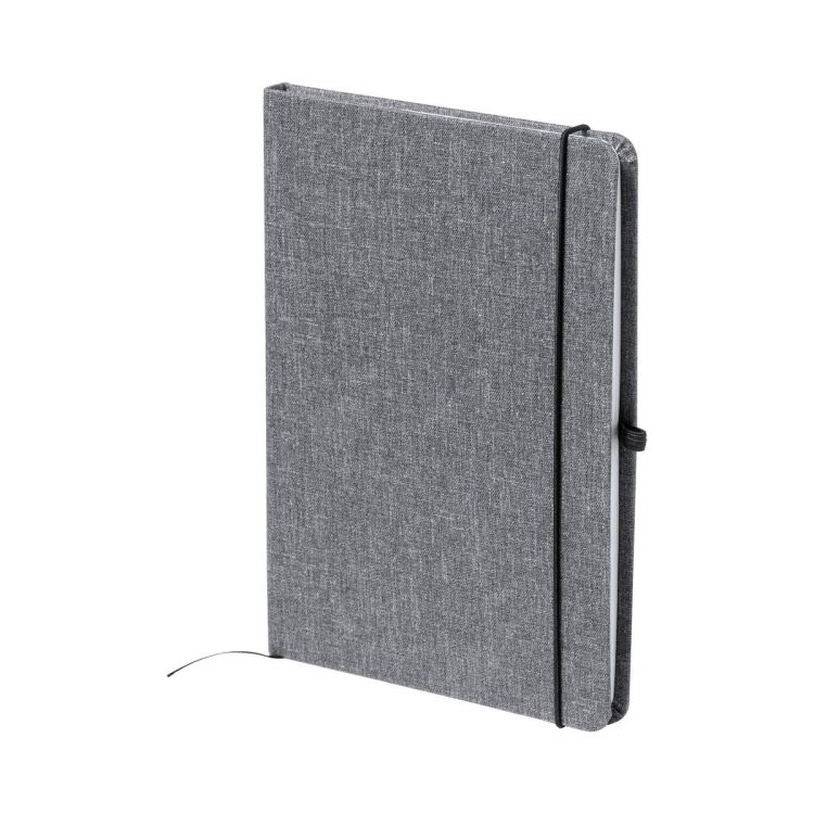 Notizbuch mit 600D RPET-Cover und 100 Seiten (liniert), Lesezeichen und Gummiband. Größe A5, in grau farbe