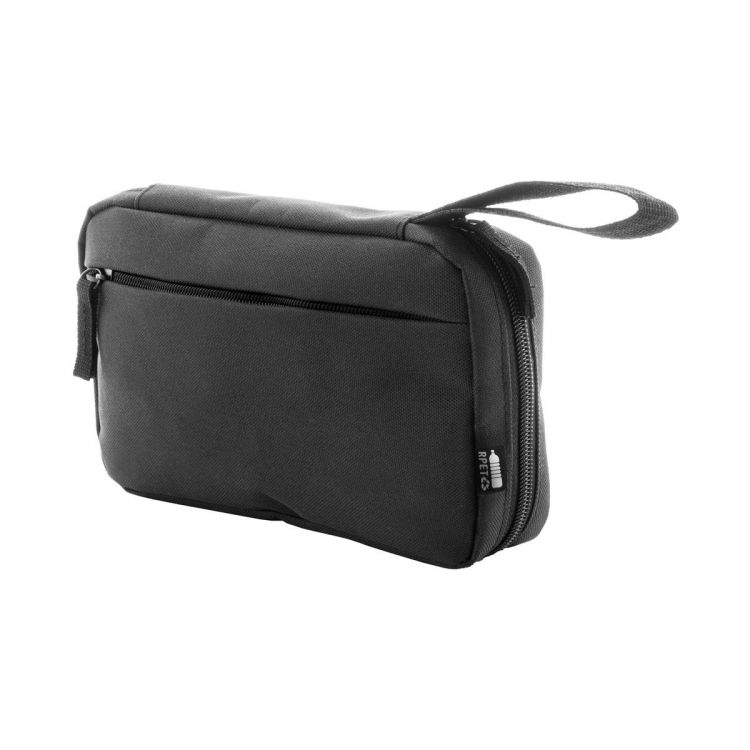 RPET-Kabeltasche mit Reißverschluss, mit Netz-Innenfächern und Reißverschlusstasche vorne. Material: 600D RPET-Polyester. Mit RPET-Label.