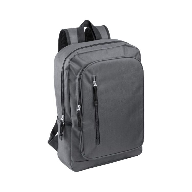 RPET-Rucksack mit Reißverschluss-Hauptfach, 2 Reißverschlusstaschen vorne, Seitentaschen und gepolstertem Laptopfach (15"). Mit gepolstertem Rücken und Schultergurten. Material: 600D RPET-Polyester. Mit RPET-Label.
