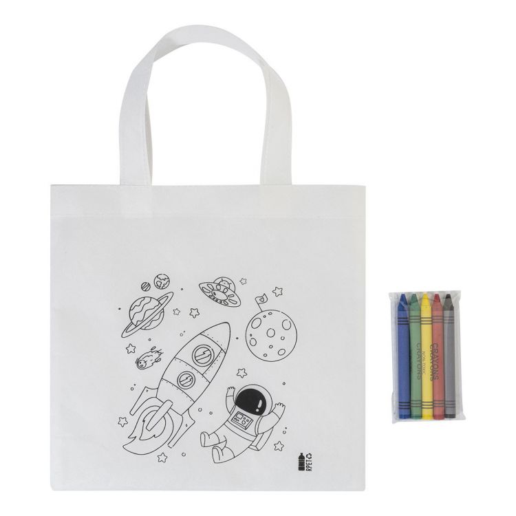 Mini-Einkaufstasche zum Ausmalen aus RPET Non-Woven mit 5 Wachsmalstiften