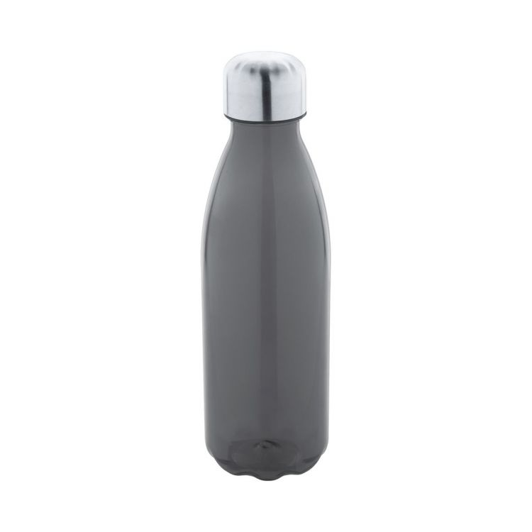 Trinkflasche aus RPET (BPA-frei) mit Edelstahldeckel. Füllmenge: 600 ml. Nicht geeignet für kohlensäurehaltige Getränke.