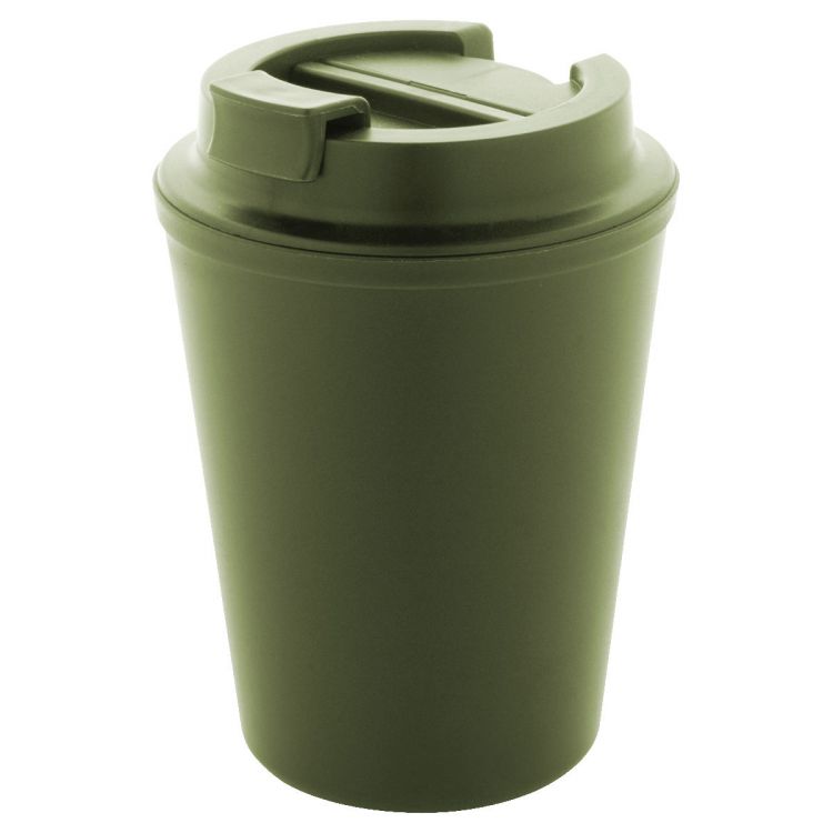 Doppelwandiger Isolierbecher aus recyceltem PP Kunststoff mit Trinkdeckel. Füllmenge: 300 ml.