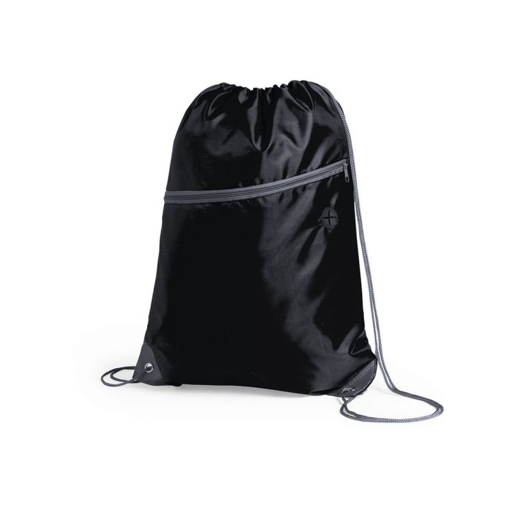 Rucksack mit Kordelzug aus weichem 210D Polyester. Mit Reißverschlusstasche auf der Vorderseite und Kopfhörerausgang. Zugbänder in Grau, passender Reißverschluss und Ecken mit Metallringen und Kunstlederverstärkung. Erhältlich in einer breiten Farbpalette.