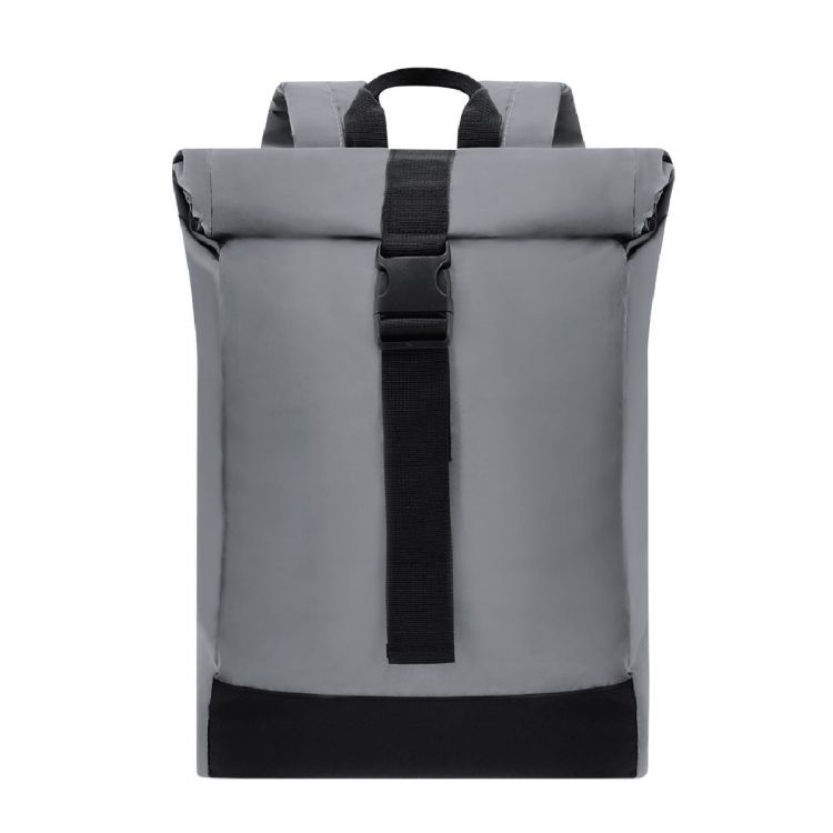 Rucksack aus weichem und widerstandsfähigem 190T-reflektierendem Polyester. Mit Aufrollverschluss und verstellbarer Schnalle. Großer Innenraum mit gepolstertem Innenraum für Laptops bis zu 15 Zoll. Reflektierende Schulter- und Rückentapes. Zusätzlich gibt es auf der linken Rückseite eine Tasche mit einem Reißverschluss. Perfekt für Reisen oder den Alltag dank seiner hohen Sichtbarkeit, passt er sich jedem Lebensstil an und macht Radfahren oder Gehen sicherer. (grau farbe)
