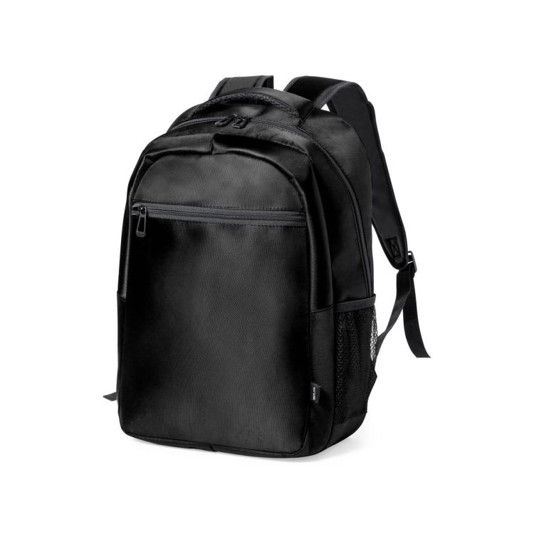 Hochwertiger Rucksack aus 420D RNYLON. Hauptfach mit passendem Reißverschluss und doppeltem Zugband. Enthält eine Außentasche mit Reißverschluss und 2 seitliche Netztaschen. Polsterung an Griff, Rücken und verstellbaren Schultergurten. Innenraum mit gepolstertem Laptop-Fach für bis zu 15"-Laptops und Rückenbefestigung für die Anbringung eines Trolleys. Erhältlich in verschiedenen Farben, mit dem Recycling-Symbol auf dem Außenetikett.Das RNYLON-Material wird aus recyceltem Kunststoff hergestellt, um die Wiederverwendung von Kunststoffabfällen zu fördern und die Nachhaltigkeit unseres Planeten zu unterstützen.