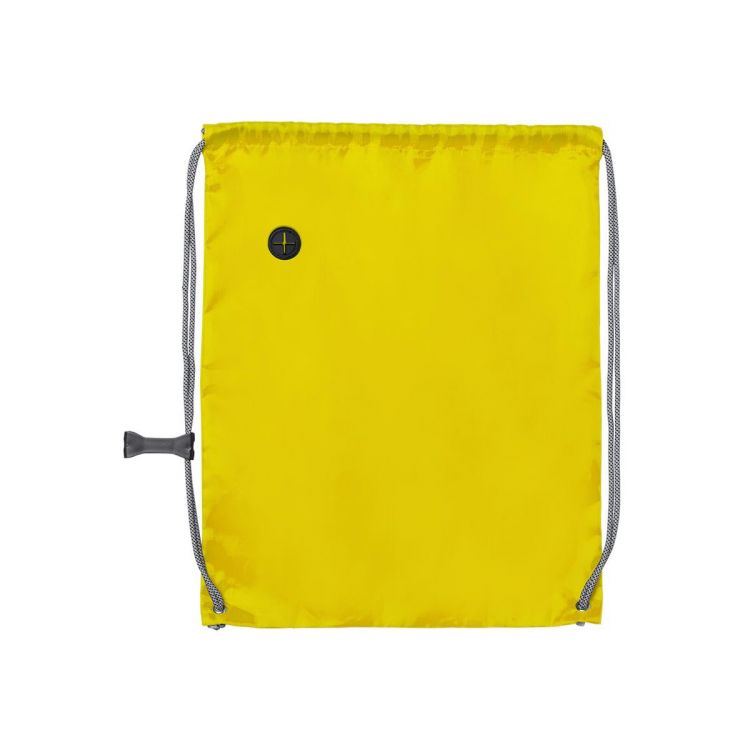 Rucksack mit Kordelzug aus weichem 190T Polyester in lebendigen Farben. Mit Kopfhörerausgang, extra dicken Zugbändern in Grau mit Stopper sowie Ecken mit Metallösen und Verstärkung. (gelb farbe)