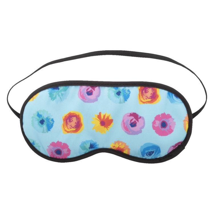 Indiviudelle Schlafbrille aus Polyester (140g/m²) mit Schaumstoffpolsterung, schwarzer Paspelierung und Riemen. Der Preis ist inkl. Sublimationsdruck. Mindestmenge: 100 Stk, in schwarz farbe