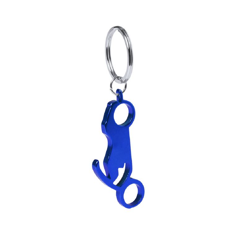 Origineller Schlüsselanhänger mit Aluminium-Flaschenöffner in Motorrad-Form und verschiedenen lebendigen Farben.